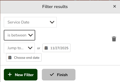 [Service Date] [is between] [Your Target Dates here]