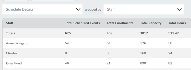 While Pike13 is not a time-tracking software, you can use the Schedule report to view the total hours your staff members were scheduled for a selected date range. This report can help you determine hours for payroll