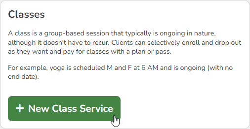 Classes work well for group-based lessons. Classes occur at regularly scheduled times and more than one client can register online for a class. Clients can also selectively enroll and cancel classes online. Classes can be set up to allow drop-ins, make-ups and leverage waitlist functionality. Common uses include group training, open gym and WOD (workout of the day).