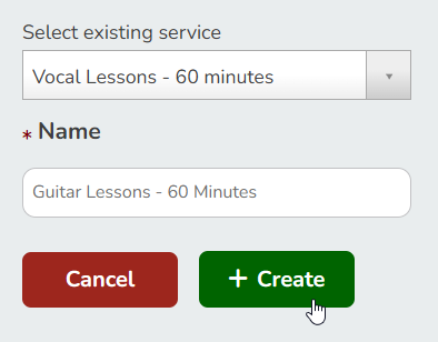 - Select the existing class you wish to duplicate and enter a Name for the new service.