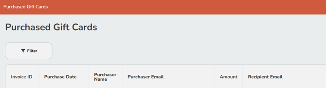 Searching: Use the Filter button on this page to search for a specific purchaser or recipient email.