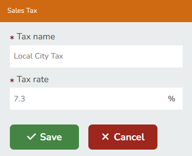 - On the Sales Tax page, enter a tax name and a tax rate, and then click Save