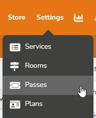 - At the top of any Pike13 page, select Settings then Passes.