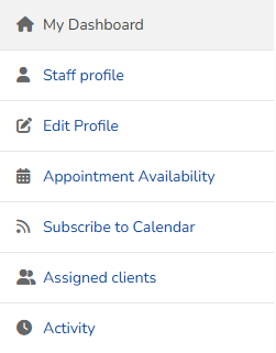When you log in to Pike13 and view your own Staff Profile, the options available in the side menu (or action menu) change depending on your role permissions. This dashboard is your personal hub for managing your schedule, availability, and history.