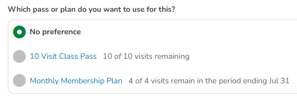 Improved representation of visits remaining on current passes/plans when enrolling in a new class/appointment.