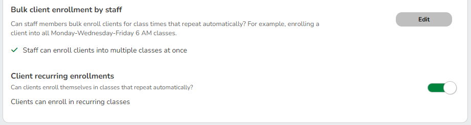 - Clients can bulk enroll in Classes on their own - feature available upon request